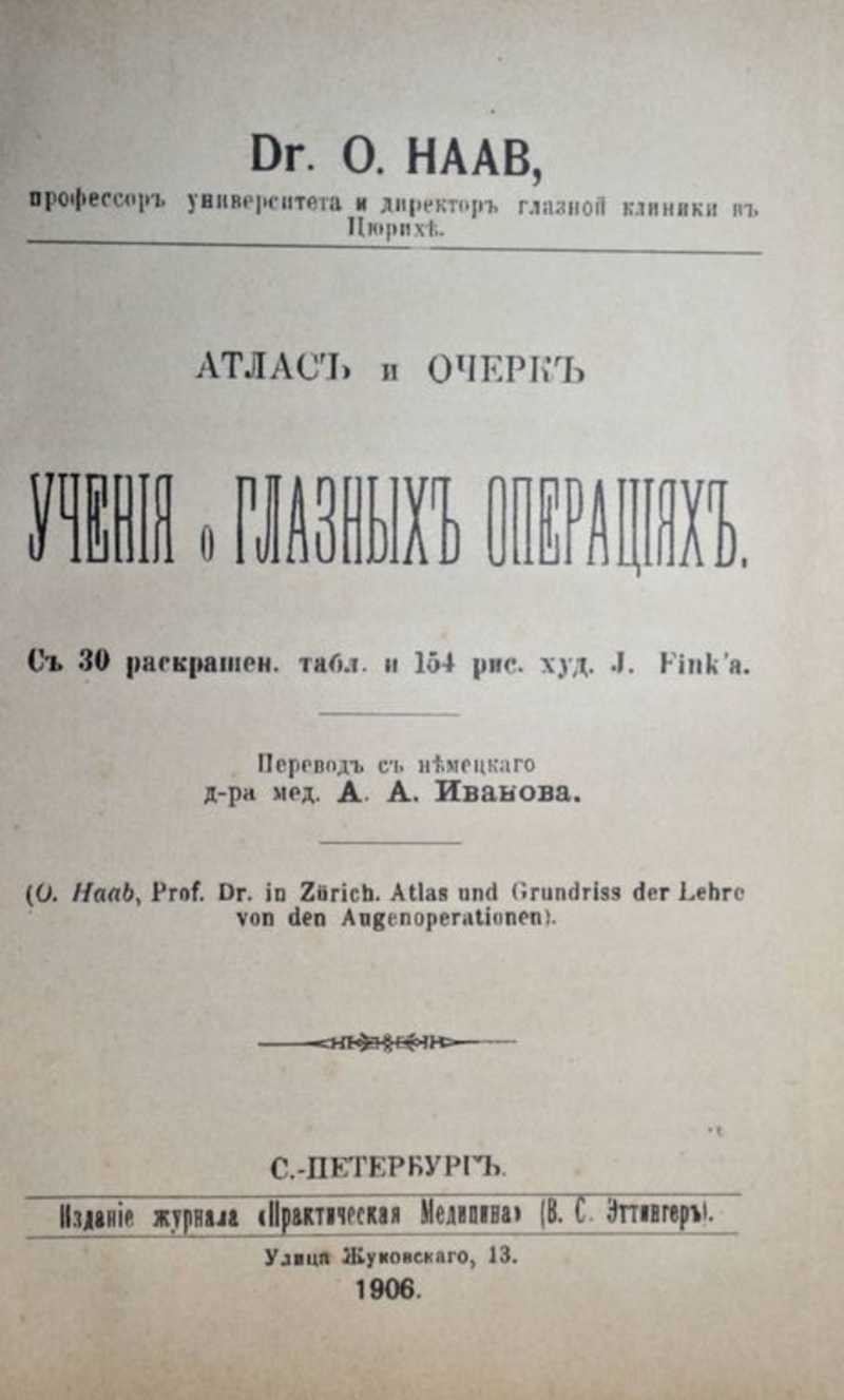 Атлас и очерк учения о глазных операциях