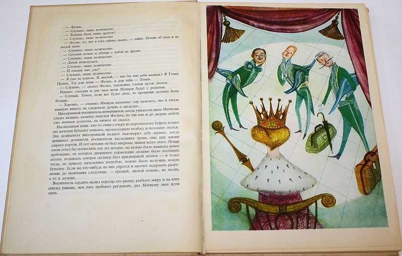 Первое издание на русском языке. На польском вышла в 1923 году. Януш Корчак (1878-1942) - выдающийся польский врач, педагог и писатель, еврей по национальности. В какой-то степени прототипом короля Матиуша мог быть и сам автор. В своем предисловии Корчак указывает, что мечтал когда-то быть королем. Мальчик-король пытается создать счастливое государство для детей всех рас и сословий, но его реформы противоречат установленным порядкам и встречают яростное сопротивление. Вельможи свергают короля-правонарушителя, и особый суд приговаривает его к смертной казни, замененной в последнюю минуту ссылкой на необитаемый остров. К этому сводится сюжет первой книги о фантастических деяниях короля Матиуша, мальчика с золотым сердцем, не пожелавшего поступиться своими представлениями о правде и справедливости. Первый полный перевод двух повестей о Матиуше на русский язык был сделан Музой Павловой и выпущен варшавским издательством «Полония» в 1958 году (впоследствии неоднократно переиздавался).