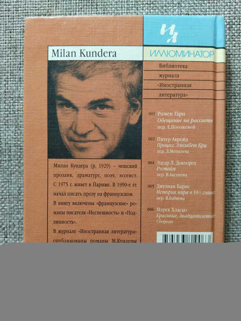 Милан Кундера (чеш. Milan Kundera: 1 апреля 1929, Кралово Поле, Чехословакия — 11 июля 2023, VII округ Парижа) — чешский и французский писатель-прозаик, переводчик, поэт, драматург. Родился в Брно, Чехословакия, в 1975 году эмигрировал во Францию. Писал на чешском и французском языках. Самые известные его произведения — романы «Невыносимая легкость бытия», «Книга смеха и забвения», «Бессмертие». В 1975 году Кундера уезжает из Чехословакии во Францию. Был приглашен профессором в Реннский университет (регион Бретань, Франция). Четвертый роман Кундеры «Книга смеха и забвения» (1978) представляет собой цикл из нескольких историй и эссе, объединенных общими персонажами (Тамина, сам Кундера), темами и образами (смех, ангелы, Прага). За эту книгу в 1979 году чехословацкое правительство лишило писателя гражданства. Следующие за этой книгой романы были запрещены для издания в Чехословакии. Кундере, который с 1981 года был гражданином Франции, вернули чешское гражданство лишь в 2019 году. «Невыносимая легкость бытия» — роман Кундеры, написанный в 1982 году и впервые опубликованный в 1984 г. во Франции, в переводе на французский. Действие происходит в 1968 году в Праге. Роман «Бессмертие» (1990) — последний, написанный им на чешском языке. С начала 1990-х годов Кундера писал по-французски. Три французских романа — «Неспешность» (1993), «Подлинность» (1998), «Неведение» (2000) — более миниатюрные, камерные, нежели его чешские романы. «Неспешность» (фр. La lenteur) — роман, впервые опубликованный в 1995 году во Франции. Первая художественная книга автора, написанная на французском языке. Кундера здесь анализирует особенности современной жизни, связанной со «сверскоростями», и сравнивает ее с неспешным бытом XVIII века, описанным в новеллах Виван-Денона. Действия романа проходят во Франции. Доминик Виван, с 1812 года барон Денон, в литературе обычно Виван-Денон (фр. Dominique Vivant, baron Denon, Vivant Denon: 4 января 1747, Шалон-сюр-Сон — 27 апреля 1825, Париж) — французский график и писатель, египтолог-любитель, дипломат и музейный работник: один из основоположников музейного дела во Франции, организатор и первый директор современного Луврского музея. Пользовался расположением Екатерины II. В Петербурге познакомился с коллекционером В. В. Рудановским. С наступлением французской революции потерял все. Его состояние было конфисковано, а имя занесено в «черные списки». Денон уехал в Италию, занимался гравированием, изучал историю искусства. Там же подружился с Ж.-Л. Давидом. Давид познакомил его с Жозефиной Богарнэ, которая представила его в выгодном свете Наполеону Бонапарту. В 1798 году Денон сопровождал Наполеона в Египетском походе. После «Ста дней» и реставрации династии Бурбонов Денон снова лишился всех должностей и званий. Он ушел в отставку, чтобы полностью посвятить себя давнему увлечению литографией. Среди его литографий встречаются и порнографические. Тираж 10 000 экз. Вес без упаковки 240 г.