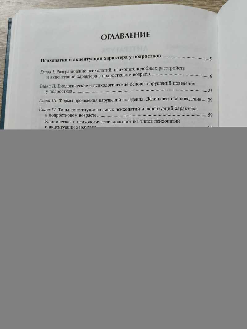 Первая часть книги - одна из самых известных монографий А.Е.Личко `Психопатии и акцентуации характера у подростков`, за которую он был удостоен Почетного диплома им. В.М.Бехтерева Академии медицинских наук СССР и которая стала настольной книгой многих поколений отечественных психиатров и психологов. В книге описаны основные типы психопатии и акцентуации характера, основные виды психопатических нарушений поведения - деликвентность, побеги из дому, ранняя алкоголизация и др., а также подростковые личностные реакции, лежащие в основе этих нарушений. Вторая часть книги - руководство по использованию методики `Патохарактерологический диагностический опросник для подростков (ПДО)`, разработанная А. Е.Личко и дополненная впоследствии его учениками. Библиография 19 названий
