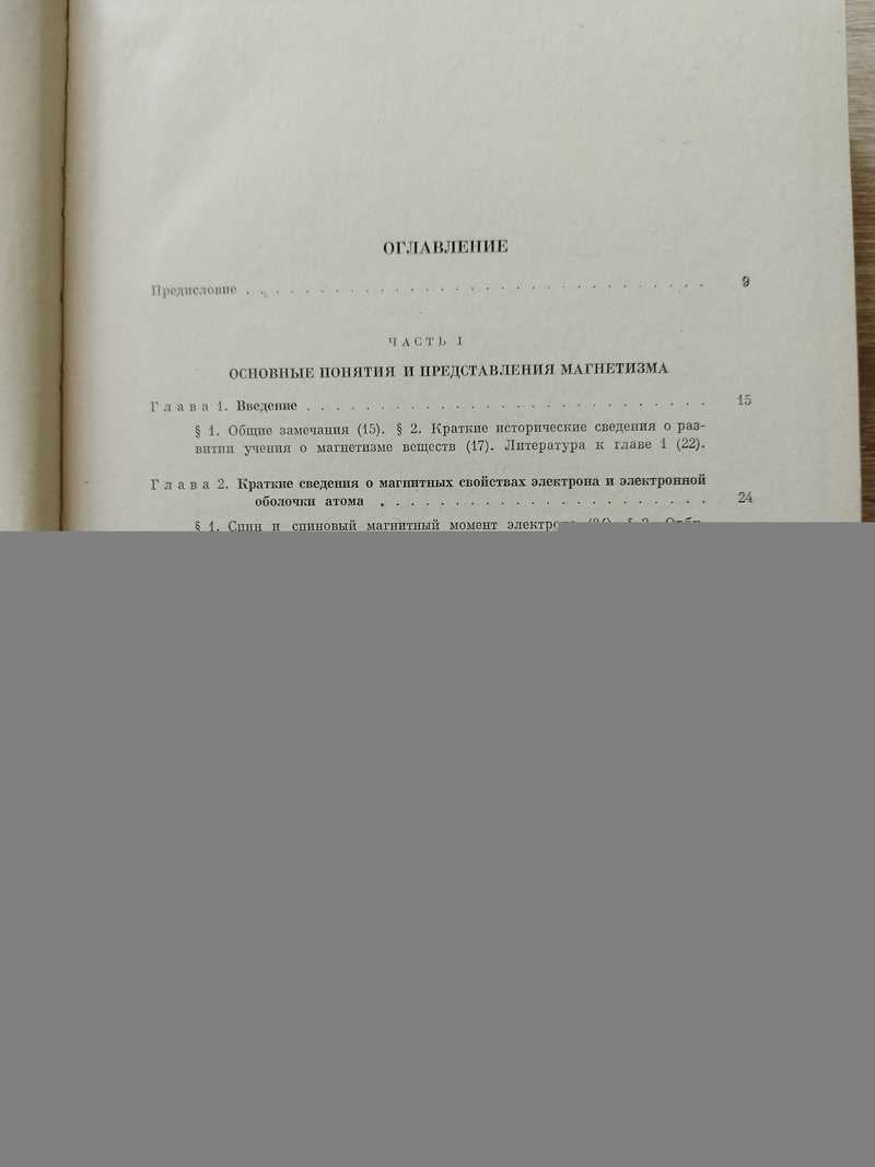 Цель книги-изложить современное состояние физических представлений о магнитных свойствах различных твердых тел. В первой части изложены основные сведения об электродинамике,термодинамике и статистической механике магнитных сред,дана также общая классификация магнитных веществ. Вторая часть книги посвящена физике магнетизма слабомагнитных веществ,не обладающих атомным магнитным порядком,т.е. диа- и парамагнетиков. Здесь рассмотрен диамагнетизм неметаллических тел,магнитные свойства сверхпроводников,парамагнетизм атомов,молекул и кристаллов,магнитные свойства слабомагнитных металлов и полупроводников,рассмотрен электронный парамагнитный резонанс,гальвано- и термомагнитные свойства,магнетооптические явления и методы магнитного охлаждения тел. Третья часть посвящена описанию сильномагнитных веществ,обладающих атомным магнитным порядком, т.е. ферро-,ферри- и антиферромагнетиков. Здесь дано качественное описание ферро- и антиферромагнетиков,теория молекулярного поля,квантовая теория ферро- и антиферромагнетиков-d- и f- металлов и сплавов, приводятся положения современной теории технической кривой намагничивания, проблемы магнетодинамики ферромагнетиков, немагнитные свойства магнитно-упорядоченных веществ. В конце книги описаны ядерные эффекты в веществах с атомным магнитным порядком. Таблицы(57), рисунки(446), библиография, приложения, указатели и др.