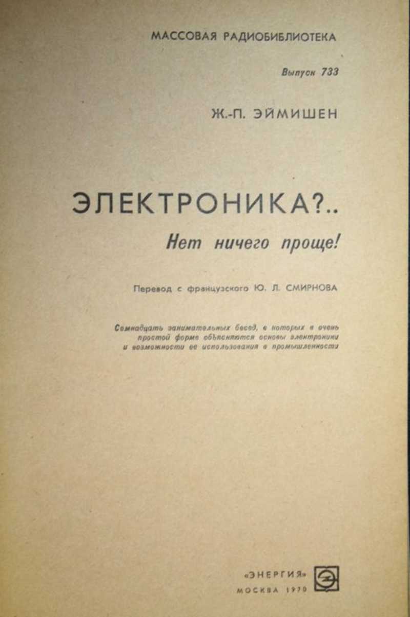 Семнадцать занимательных бесед, в которых в очень простой форме объясняются основы и возможности ее использования в промышленности. Книга в занимательной форме знакомит читателя со многими областями одной из наиболее быстро развивающихся в настоящее время наук - электроники. Рассказывается о возможности использования электроники в промышленности. Книга рассчитана на широкий круг читателей.