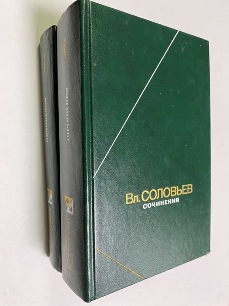 В первый том сочинений русского философа-идеалиста входят обобщающий труд по этике «Оправдание добра. Нравственная философия» и труды по теории познания «Критика отвлеченных качал» и «Теоретическая философия». Во второй том Сочинений Вл. Соловьева вошли его работы по теории познания, этике и эстетике. Среди них — «Кризис западной философии», «Три разговора», «Смысл любви», «Три речи в память Достоевского», характеризующие эволюцию философских взглядов философа. Цена за комплект. Вкс 2 тт. 1668 г.