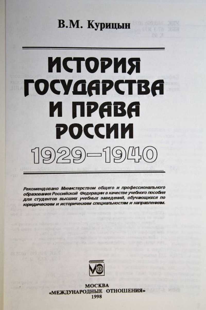 Учебное пособие подготовлено в соответствие с программой учебного курса вузов "история государства и права России" и представляет собой углубленную разработку ключевой темы нашей истории, а именно периода 1929-1940 годов. Автор анализирует архивные документы тех лет, в том числе из ранее секретных фондов. Данное издание открывает серию учебников, посвященных научному исследованию и подготовке курса новейшей истории государства и права России (февраль 1917 г. - до принятия Конституции РФ 1993 г.). Для студентов, аспирантов и преподавателей юридических и исторических вузов, научных работников и тех, кто интересуется историей.