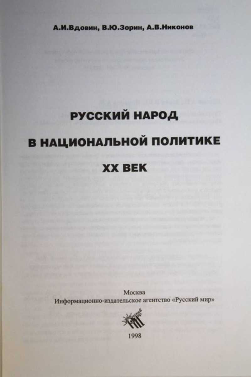 На основе широкого круга источников (в том числе малоисследованных) авторы прослеживают изменения в представлениях, определяющих основы российской национальной политики и ее реализацию на различных этапах отечественной истории XX века. Новая концепция национального вопроса позволяет объяснить и отразить особенности развития русского народа в сообществе с другими российскими этносами на протяжении столетия. Вскрываются глубинные причины кризиса национальных отношений на рубеже 80-90-х годов, обосновываются рекомендации по совершенствованию современной российской государственности и национальной политики.