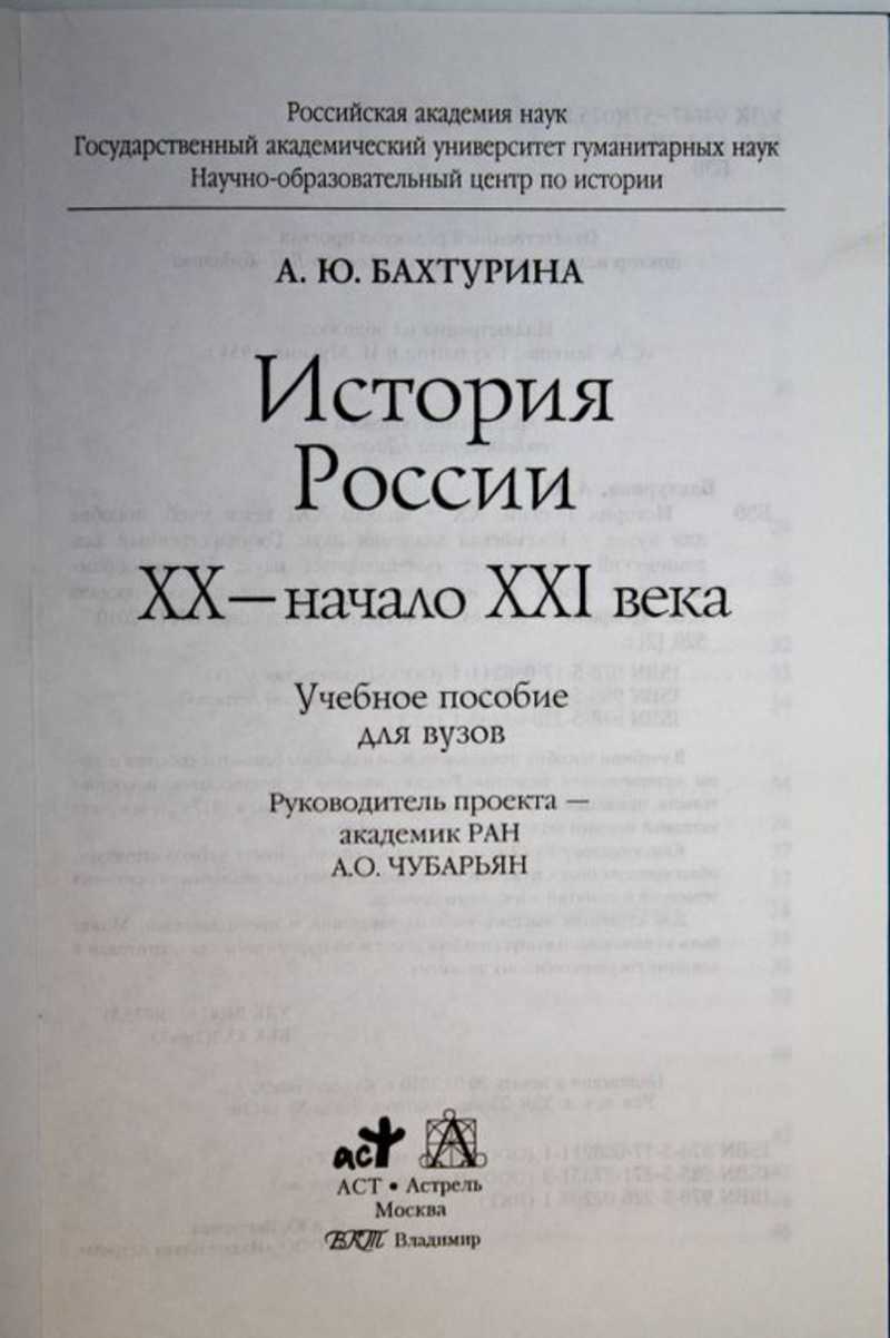 В учебном пособии последовательно изложены основные события и этапы исторического развития России, начиная с предпосылок и обстоятельств, приведших к революционному взрыву в стране в 1917 г. и завершая историей первого десятилетия нынешнего века. Пособие состоит из 12 глав: Революция в России (февраль - октябрь 1917 г.), Установление советской власти в России (октябрь 1917 - весна 1918 г.), Советская Россия в годы Гражданской войны (лето 1918 - 1920 г.), Советская Россия в бурные 20-е годы. Выбор пути развития, Модернизация СССР в годы первых пятилеток (конец 20 - 30-е годы), СССР в годы Великой Отечественной войны (1941 - 1945), СССР в 1945 -1953 гг., СССР в 1953 - 1964 гг., СССР в 1964 - 1985 гг., СССР в 1985 - 1991 гг., Российская Федерация в 1991 - 1999 гг., Россия в первое десятилетие XXI века. Каждая глава имеет четкую структуру, облегчающую поиск нужного материала. Приводятся объяснения основных исторических терминов и понятий изучаемого периода. Автор пособия - А. Ю. Бахтурина. доктор исторических наук, профессор кафедры истории государственных учреждений Российского государственного гуманитарного университета. Для студентов высших учебных заведений, преподавателей и всех, интересующихся историей.