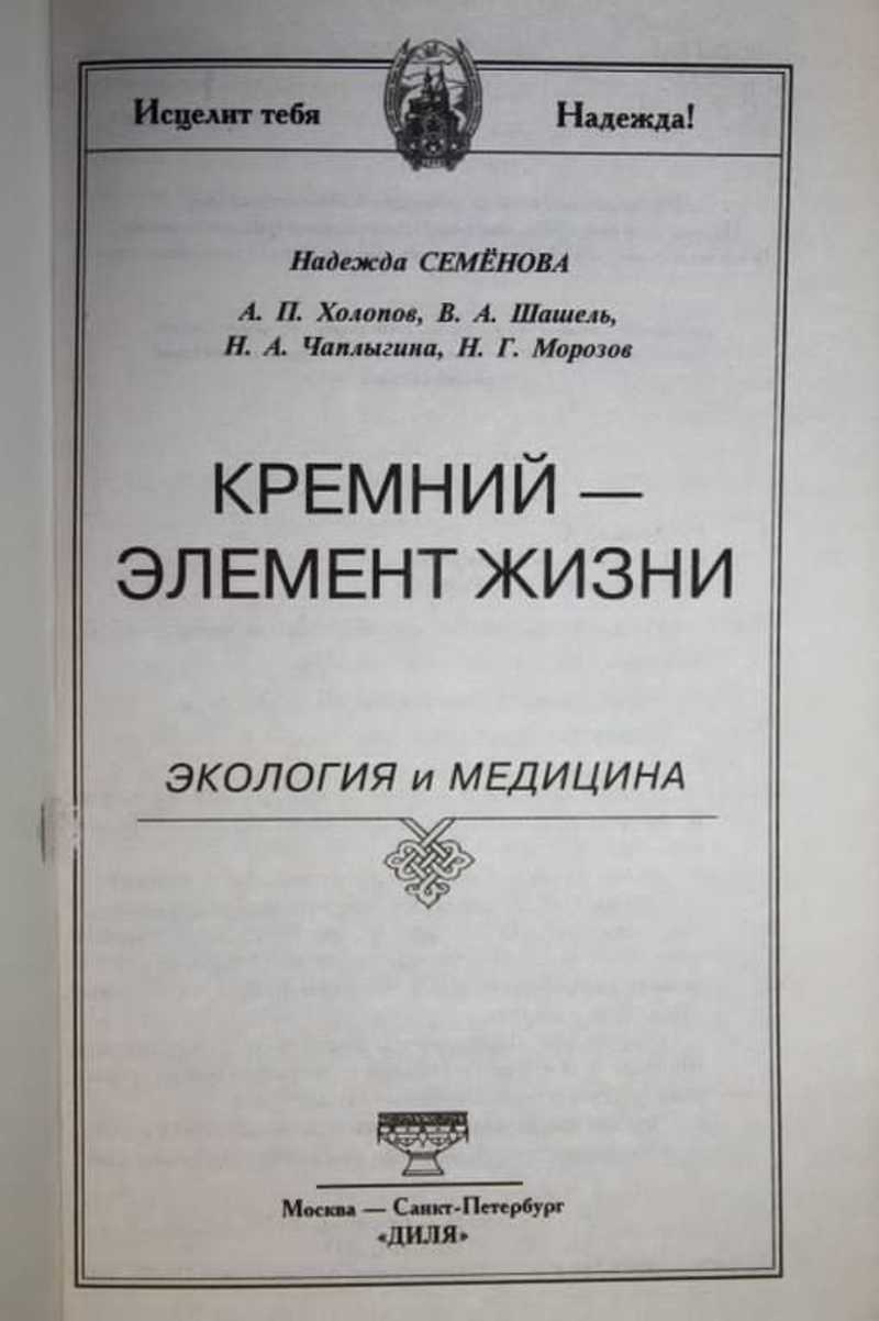 В книге "Кремний - элемент жизни" изложены два взгляда на роль самого важного элемента для здоровья человека - кремния. Автор первой части "Мир "живого" кремния" - Н.А.Семенова, известный и неутомимый исследователь, продолжатель дела Вернадского, кандидат биологических наук, действительный член Европейской академии естественных наук, бессменный руководитель Школы здоровья "Надежда" в г. Сочи. Вторую часть "Глинолечение и энтеросорбция организма" написали врачи. В коллективной монографии обобщен опыт практического использования глинолечения.