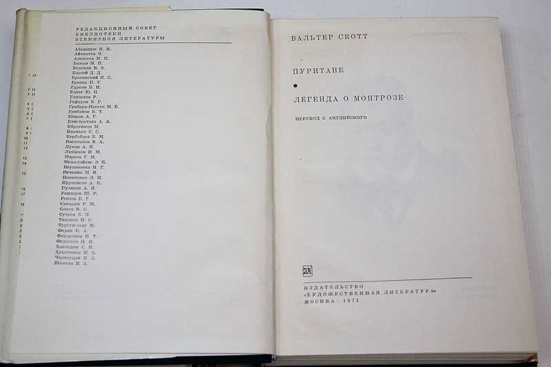 Роман «Пуритане» (1816) великого английского писателя Вальтера Скотта (1771-1832) относится к шотландскому циклу его исторических романов. В нем отражено восстание 1679 г. в Шотландии, направленное против династии Стюартов. «Легенда о Монтрозе» повествует о восстании Монтроза в 1645 г. против шотландского парламента.