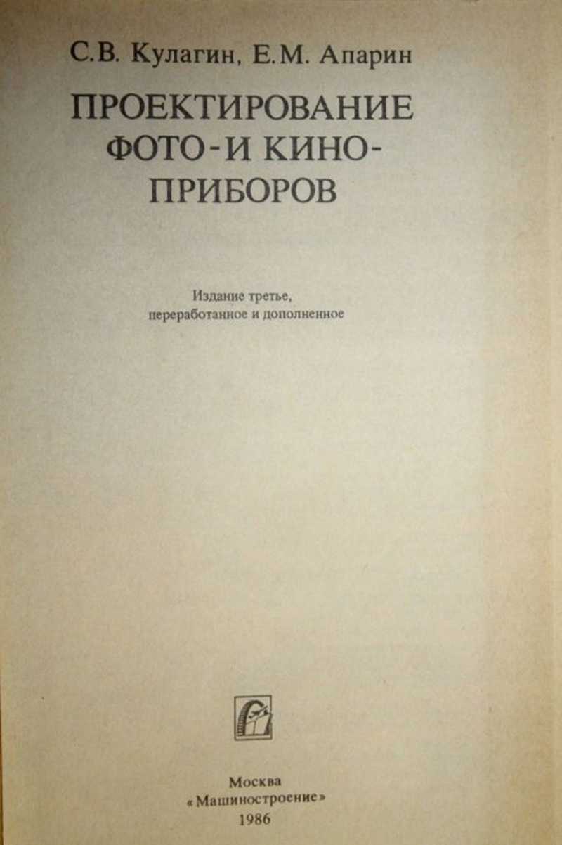 В книге рассмотрены вопросы проектирования фотоаппаратов, киносъемочных аппаратов и проекционных приборов. Изложены теоретические основы и методы расчета и выбора фото- и кинообъективов, видоискателей, механизмов для отработки выдержек (затворов), лентопротяжных механизмов и осветительных систем диа- и эпипроекционных приборов. Большое внимание уделено методике проектирования экспонометрических устройств съемочных аппаратов. Книга содержит справочные материалы по фото- и кинопленкам, фото- и кинообъективам, фотоаппаратам, киноаппаратам и диапроекторам и рассчитана на инженеров, занимающихся разработкой и эксплуатацией фото- и киноприборов.