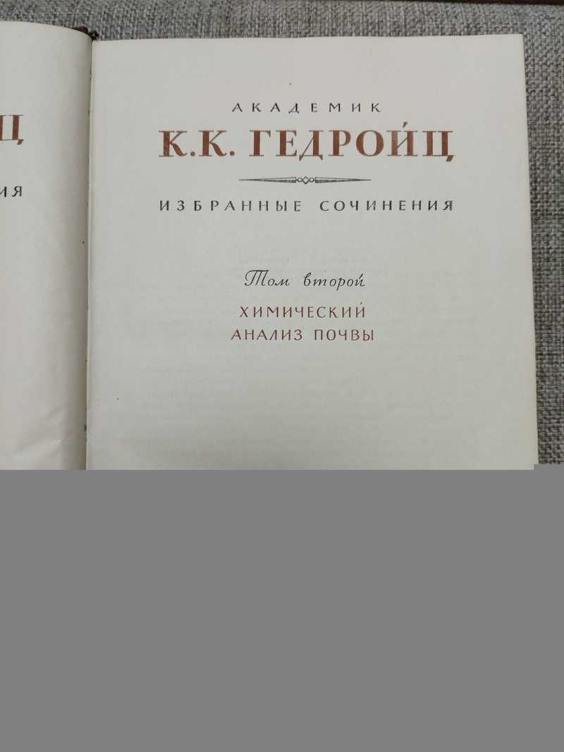 Капитальное руководство академика К. Гедройца "Химический анализ почвы" по своему научному и практическом значению занимает особое место, не имеет себе равных в мировой литературе. На протяжении длительного врмеени служит незаменимым руководством и справочным пособием в почвенных и агрохимических лабораториях нашей страны и за рубежом. Тираж 12000 экз.