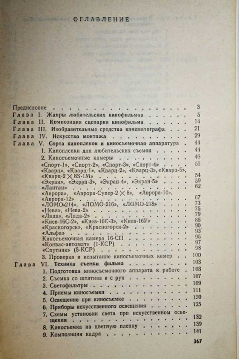 Первые главы книги дают общее представление о кинематографе, знакомят читателя с теми жанрами и направлениями, в которых кинолюбители с наибольшим успехом могут применить свои способности. Значительная часть отведена аппаратуре и технологии съемок. Специальные главы посвящены кинопроекционной аппаратуре. В книге приводятся эксплуатационно-технические данные по любительской киносъемочной и кинопроекционной аппаратуре, рекомендации по технике съемки фильма (на натуре, в помещении, при искусственном освещении), работе с экспонометром, обработке кинопленок черно-белых и цветных, их хранению и ремонту, по оборудованию любительских кинолабораторий. Освещаются вопросы монтажа фильмов, их озвучивания, демонстрирования. Приводятся также другие необходимые кинолюбителю специальные сведения.