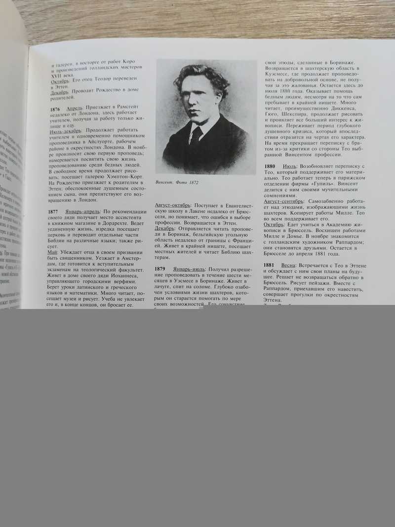 Винсент Виллем ван Гог (нидерл. Vincent Willem van Gogh, 30 марта 1853, Зюндерт, Северный Брабант - 29 июля 1890, Овер-сюр-Уаз) - нидерландский художник-постимпрессионист, чьи работы оказали вневременное влияние на живопись XX века. За десять с небольшим лет создал более 2100 произведений, включая около 870 картин маслом. Среди них - портреты, автопортреты, пейзажи, натюрморты и панно с изображением оливковых деревьев, кипарисов, полей пшеницы и подсолнухов. При жизни был практически обойден вниманием критиков. Дарственная на форзаце. Вес 360 г.