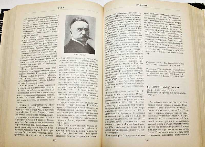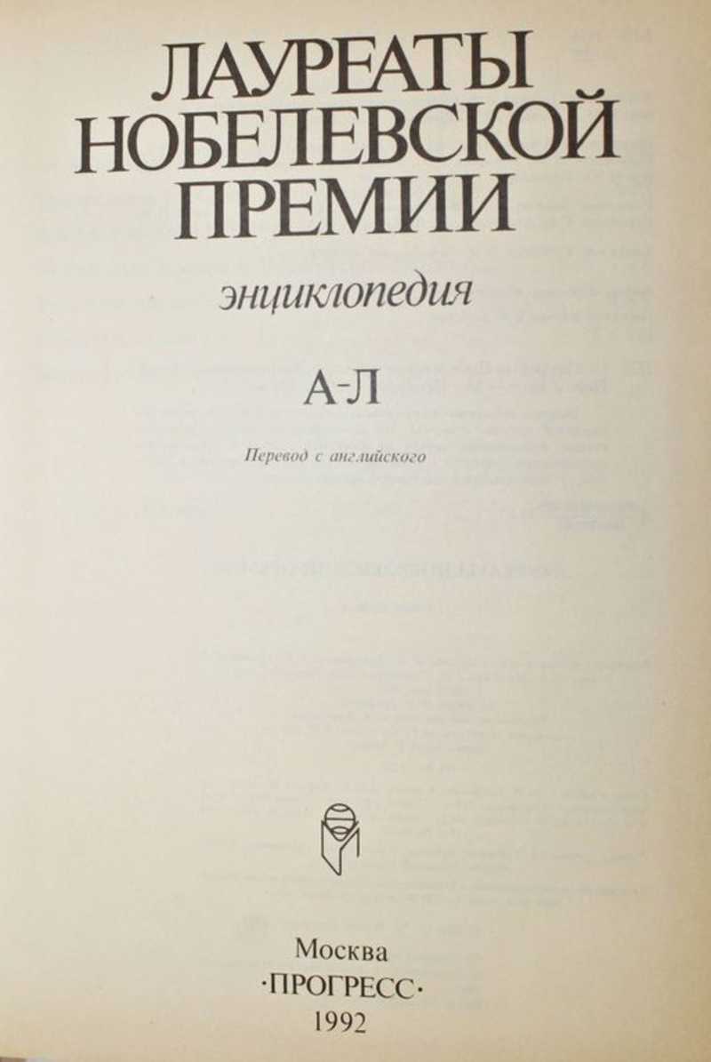 Энциклопедия «Лауреаты Нобелевской премии» содержит 564 биографические иллюстрированные статьи, посвященные самым выдающимся ученым и общественнополитическим деятелям, а также организациям, удостоенным в 1901-1986 гг. этой наиболее престижной премии в мире. Это издание представляет собой перевод американского словаря «Nobel Prize Winners», вышедшего в 1987 г. в нью-йоркском издательстве «Уилсон компании». Авторы биографических очерков: Арнолд, Кен Р.; Берема, Майкл Дж.; Доэл, Рон; Кэй, Тони; Уитни, Мишель; Хоуэлл, Джоэл Д. и многие другие. Переводчики: Алипов Н. Н., Волкова Е. М., Година Е. З. и др.