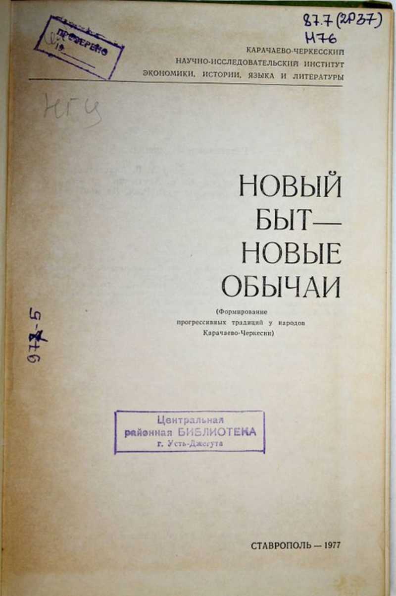 Новый быт — новые обычаи: (Формирование прогрессивных традиций у народов Карачаево-Черкесии)